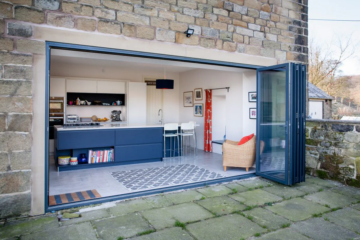 With such an impressive view, it was crucial to avoid placing any obstructions in front of the large bi-fold doors. This limited the main kitchen units to the far wall where space is at a premium. Including a kitchen island was the perfect solution to gain storage and worktop space, even allowing our client to cook at the hob whilst looking out across the beautiful Yorkshire landscape.