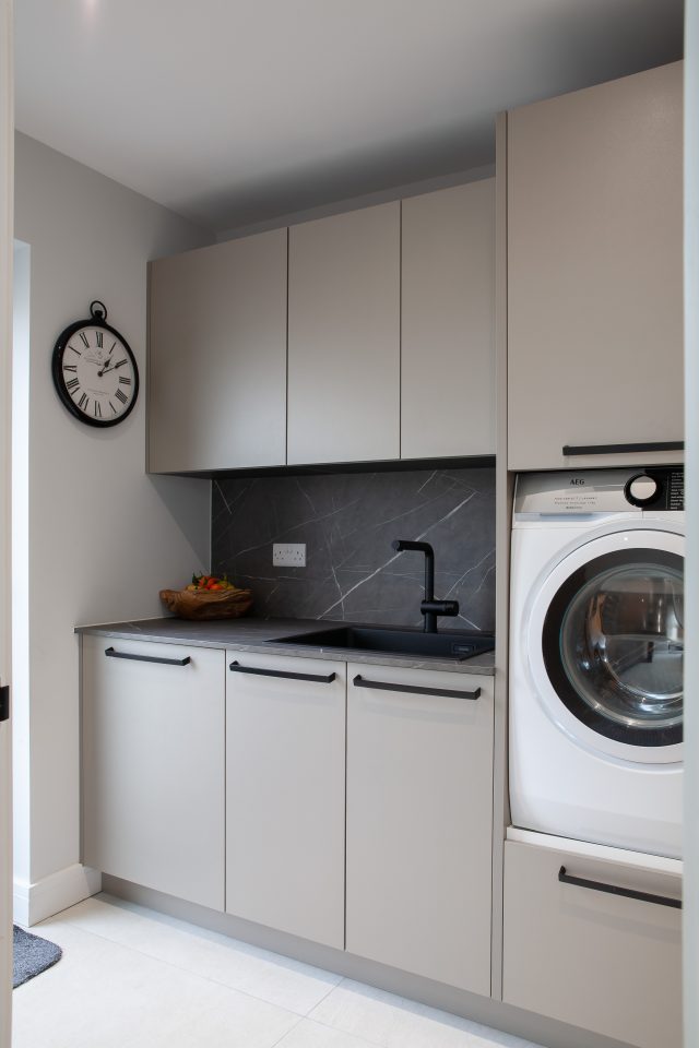 We also designed and installed the adjoining utility room with practicality in mind. Bespoke housing raises the washing machine and tumble dryer to a more convenient height while allowing us to maximise storage with separate drawer and cupboard compartments. From the kitchen to the utility room, not a single detail has been overlooked in the design and installation of this breath-taking Leeds kitchen project.