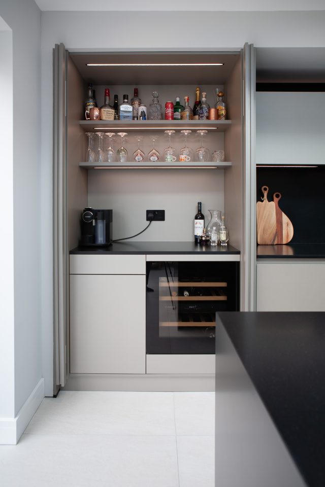 "This exceptional, elegant and practical kitchen was a pleasure to design and install. The pocket door bar unit undeniably makes for an enviable feature."