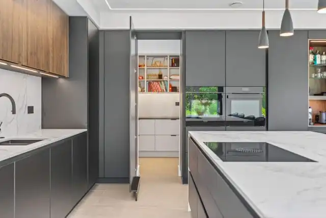 The Bora hob introduces precision and innovation, with integrated extraction that keeps the space clean and open. Paired with the Quooker tap, which delivers instant boiling water on demand, these premium features bring exceptional convenience and efficiency to the overall functionality of the kitchen.