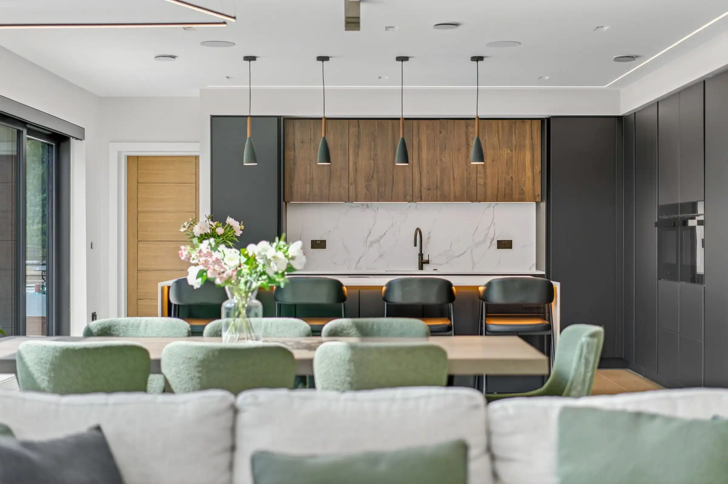 "For this project, we wanted to create a space that felt effortlessly connected yet highly functional. By using a rich mix of textures and clean-lined materials, we achieved a kitchen that not only looks stunning but also supports the flow of modern family life."