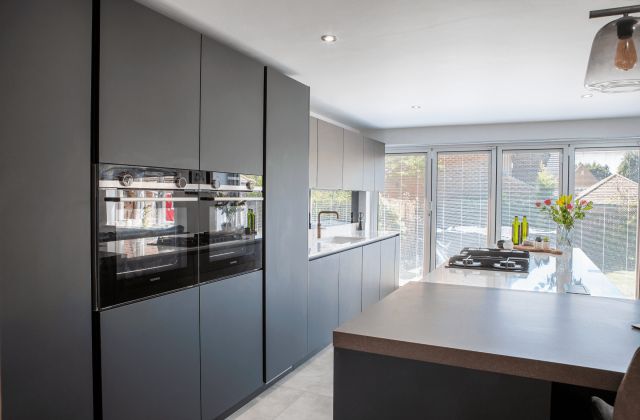 This York kitchen makes a dramatic impact. It establishes a stunning backdrop to our client’s open-plan living space. We love the bold pairing of Pronorm’s Matt Black and Steelbrush Gold finishes.
